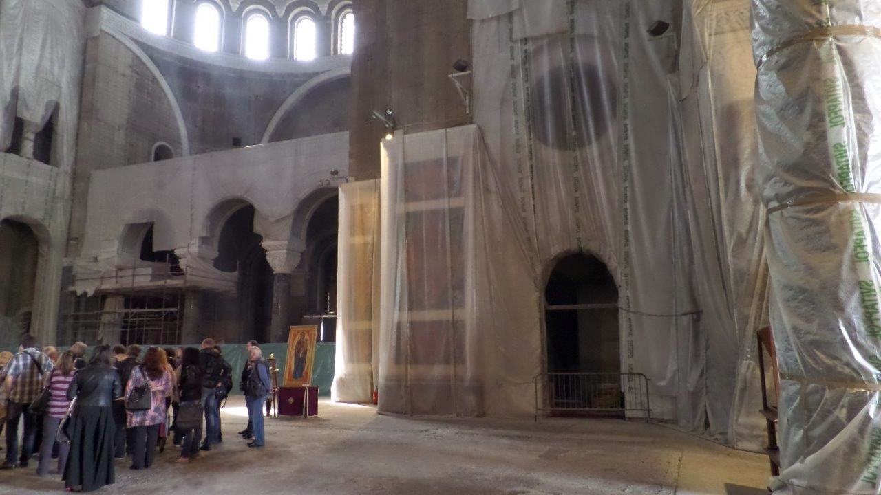 The Orthodox church of St Sava (after whom the river is named) is imposing and very beautiful - but also unfinished. Relying on donations to complete the work most of the outside seems to be done but the inside is still under construction. Despite this it is already consecrated and has a temporary altar.